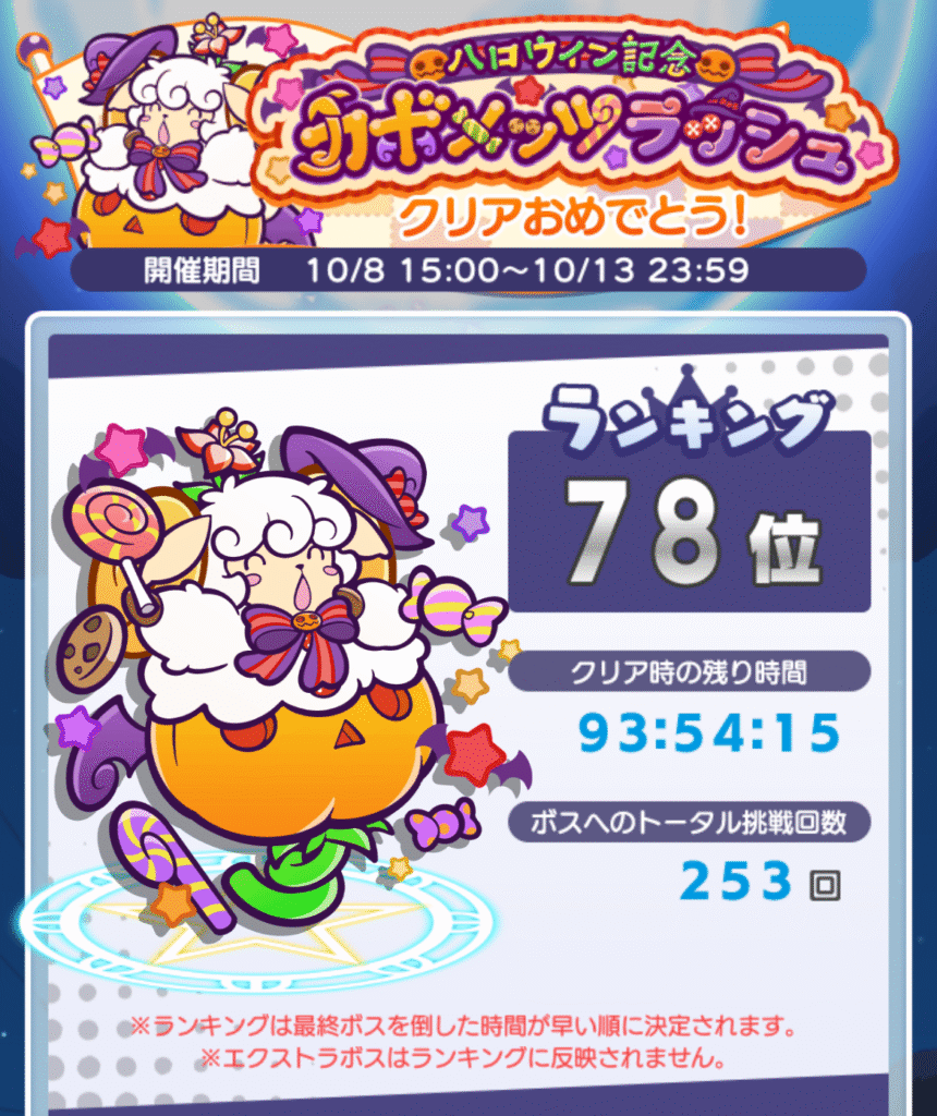 開催期間は10/8 15:00~ 10/13 23:59となっています。6日間もあります。月曜が祝日だから1日延長になるのでしょうか⁈