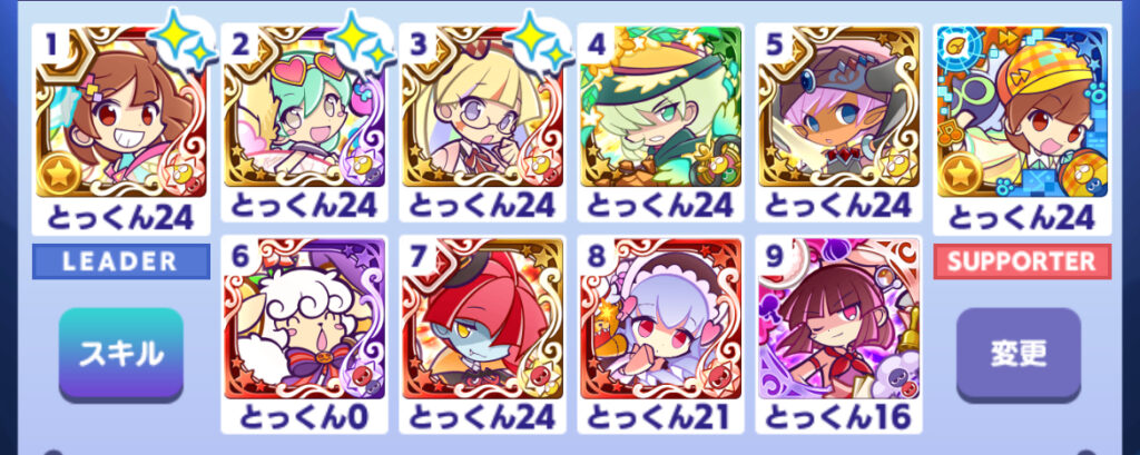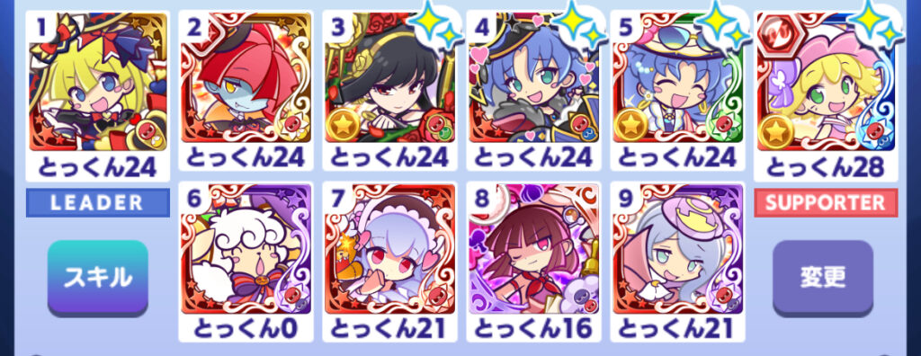 ハッピーフェアリーアミティのとくもりで毎ターン10%回復が効果的です。おじゃまぷよ時限爆弾解除できなかった時に備え、いばら姫のとくもりタフネスで耐ることができます。