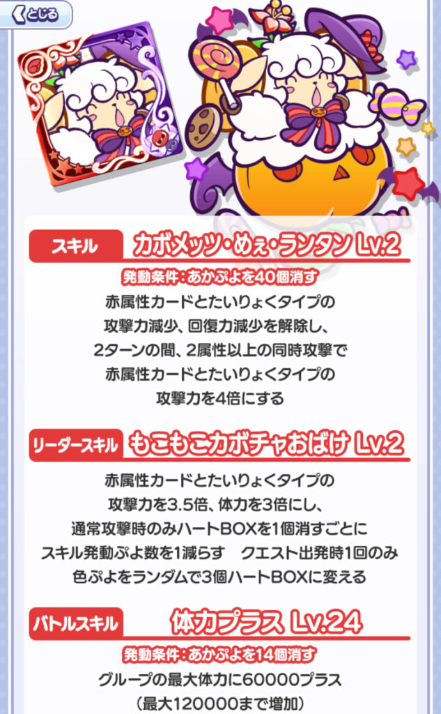 赤属性カードとたいりょくタイプの縛りはあるものの、コスト52で攻撃力・回復力減少解除+条件付きエンハンスのスキルは優秀ですね。
