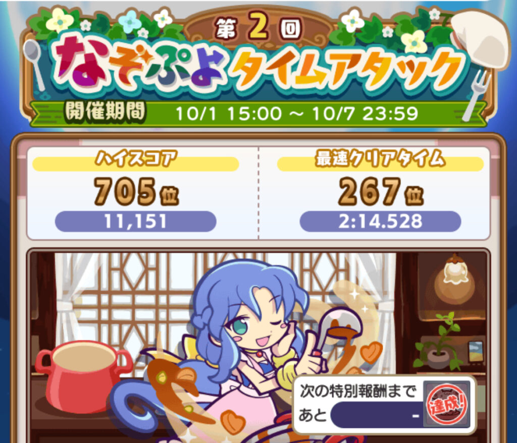 いやぁ、新しく立ち上げた事業が忙しすぎて、ぷよクエやる時間とかなかったんですが、なぞぷよタイムアタックの累計スコアが150万を越えました。